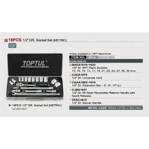 5. SOCKET SET TOPTUL 1/2" DRIVE 6PT 18PC GCAD1801