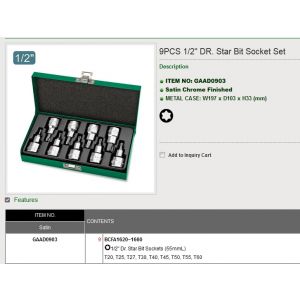 5. SOCKET SET TOPTUL 1/2" DRIVE STAR BIT 9PC GAAD0903